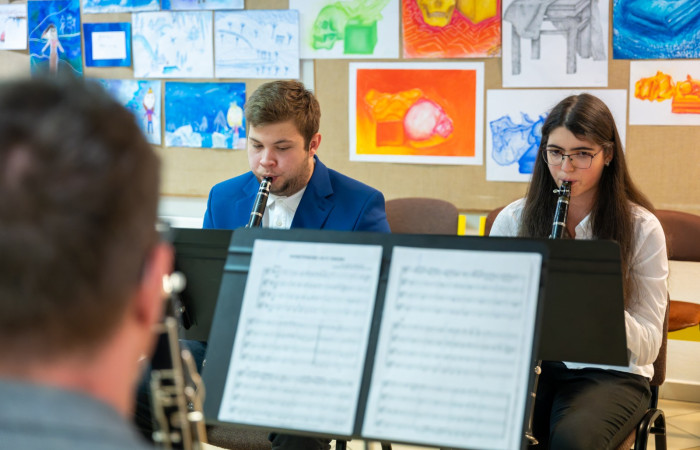 Po krátké pauze, během které žáci hudebního oboru úspěšně absolvovali pololetní zkoušky a zahráli na třídních večírcích, se ve čtvrtek 13. února vpodvečer opět rozezněl "zuškový" koncertní sál hudbou našich mladých muzikantů a zpěváků v rámci tradičního Podvečerníčku. Tento v pořadí již pátý koncert v letošním školním roce i přes nepřízeň počasí, která se projevila o něco nižší návštěvností, nabídl divákům a posluchačům velmi pestrý program plný vynikajících instrumentálních a pěveckých vystoupení. Zkrátka ale nezůstali ani příznivci výtvarného umění. Po skončení koncertní části čekala na návštěvníky v prostorách školního atria a za doprovodu hudby skvělá výstava kreseb, maleb, grafik a kombinovaných technik z dílny našich výtvarníků. A komu snad při konzumaci hudebního a výtvarného umění v podání našich žáků vytrávilo, ten měl možnost doplnit síly malým občerstvením. Velký dík patří všem, kdo se na přípravě a realizaci této akce podílel, tedy našim žákům, pedagogům a nepedagogickým zaměstnancům. Ještě jednou děkujeme a brzy na shledanou!