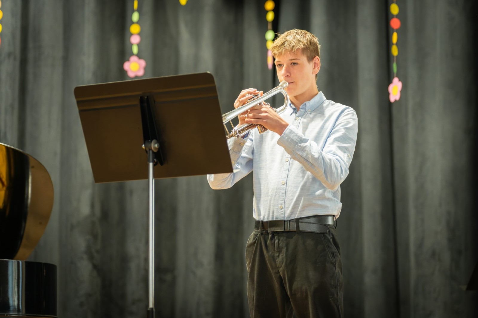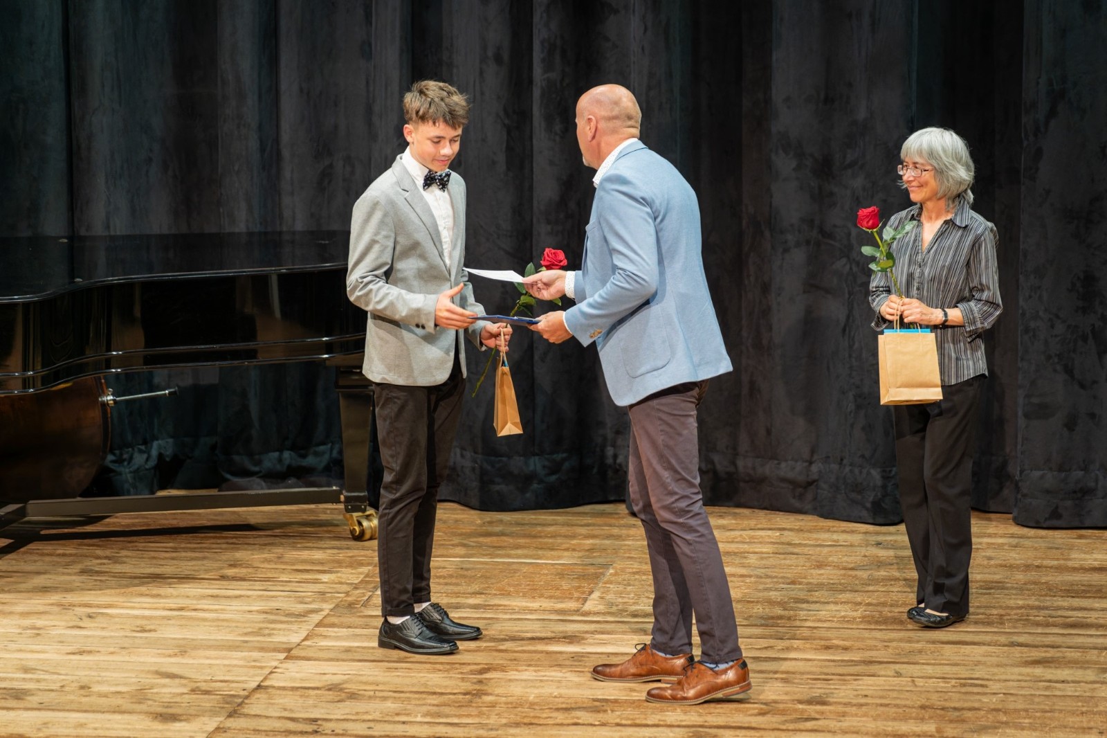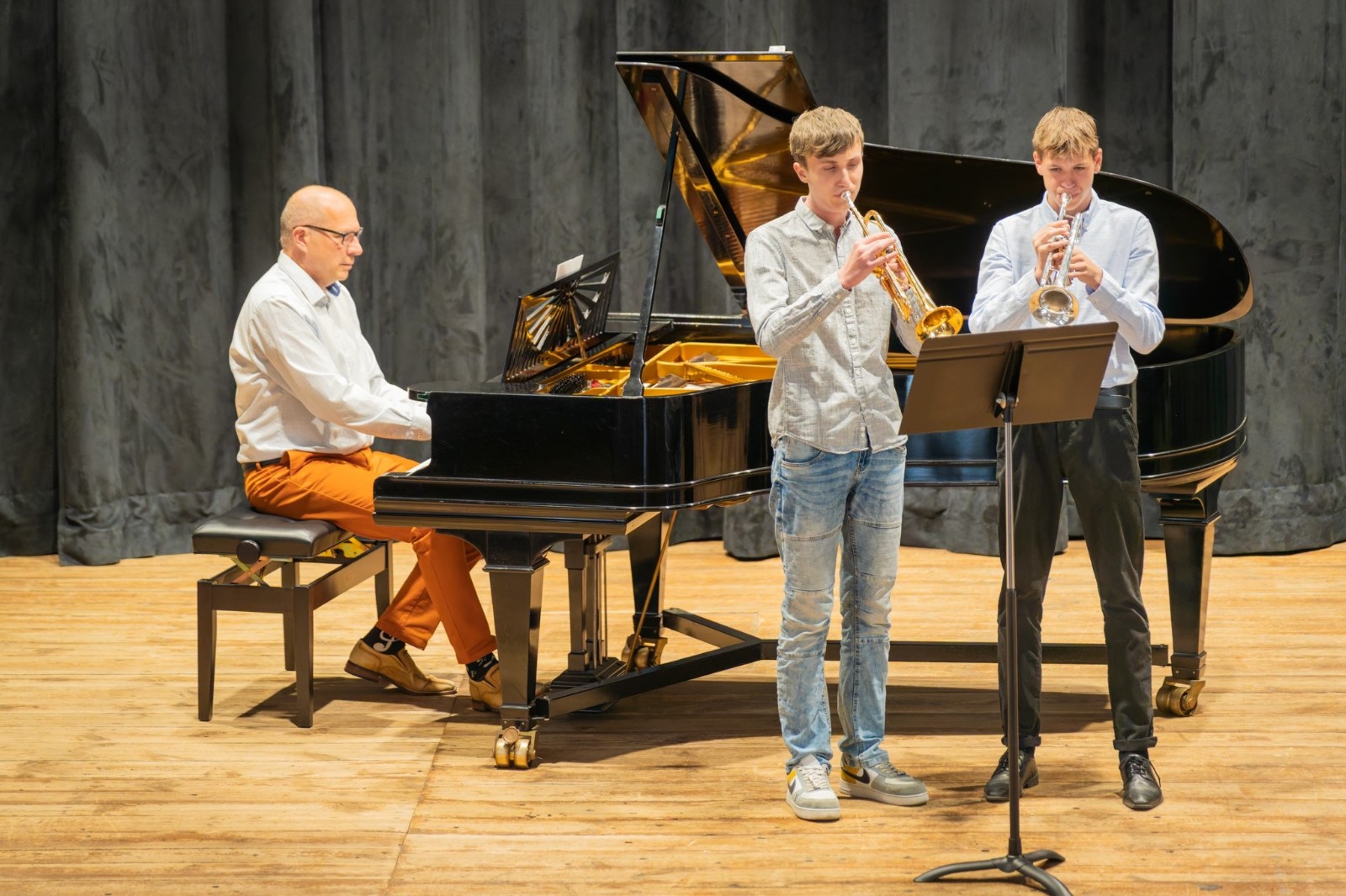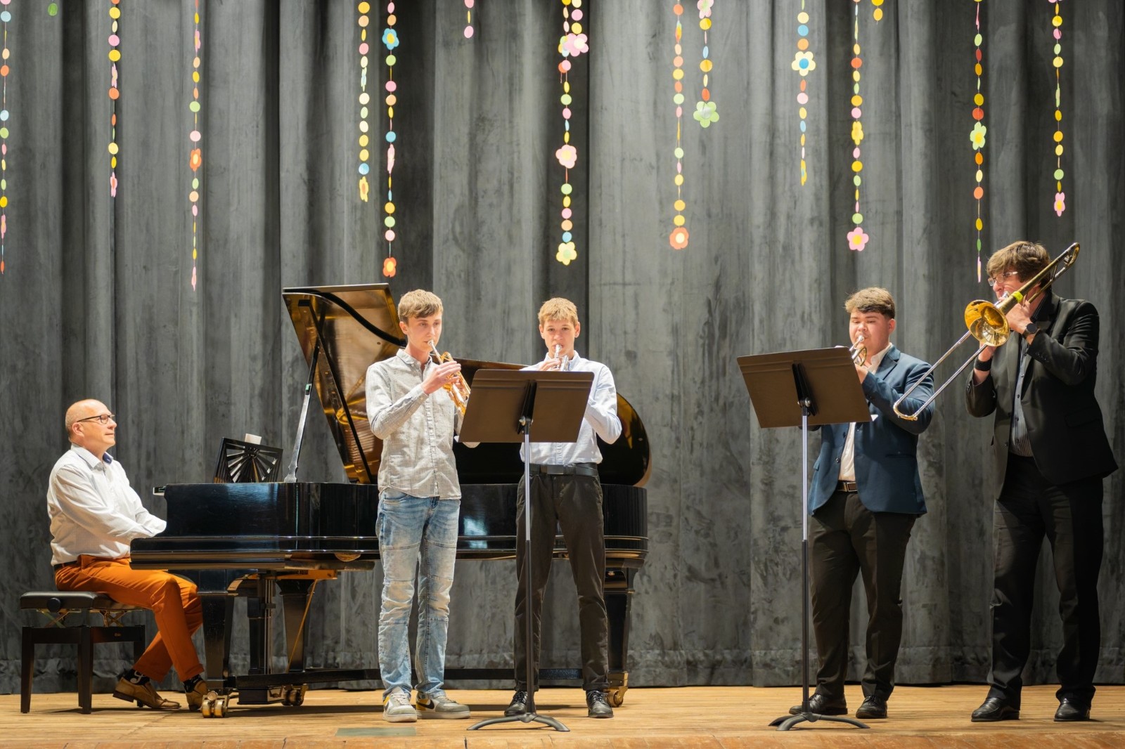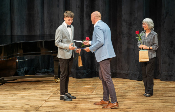 Také třetí a zároveň poslední letošní absolventský koncert, který se uskutečnil v pondělí 12. května v prostorách koncertního sálu, nabídl posluchačům mnoho výborné muziky. Zobcová flétna, fagot, saxofon, trubka a klavír – to byly nástroje, které v podání našich absolventů rozezněly náš sál v širokém záběru hudebních stylů, od klasicismu až po jazz. I tentokrát svými výkony všichni absolventi ukázali, jaký obrovský kus cesty v rámci studia na nástroj ušli, a že si onen absolventský list opravdu zaslouží. Posíláme jim velký dík a gratulaci, stejně tak jako jejich učitelům, kteří je po celou dobu studia vedli. Ještě jednou děkujeme všem, co se na přípravě a realizaci koncertu podíleli a brzy na shledanou!